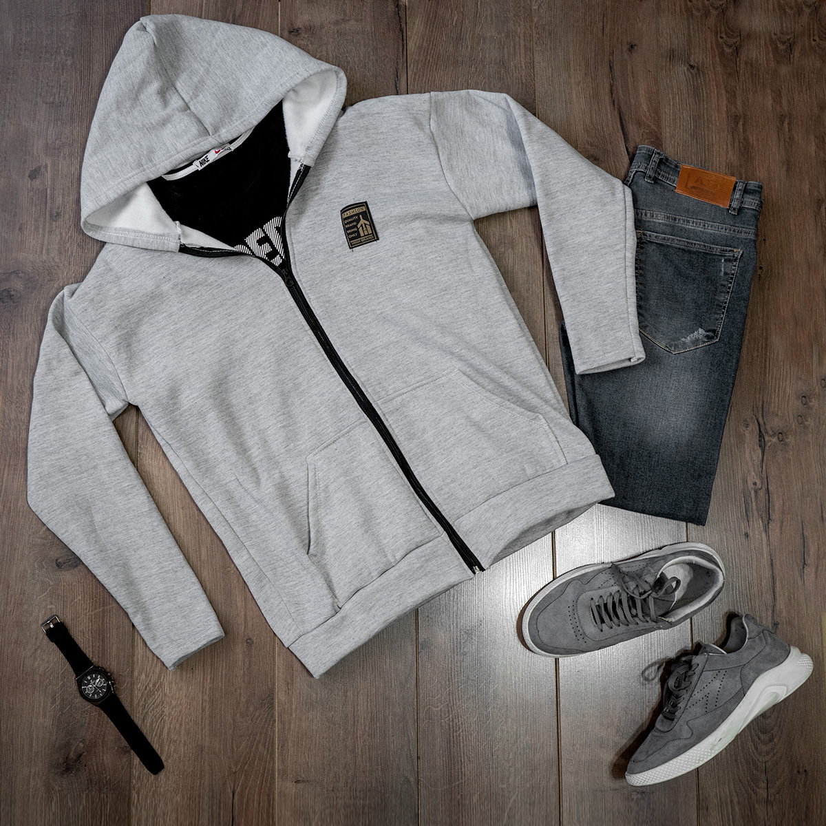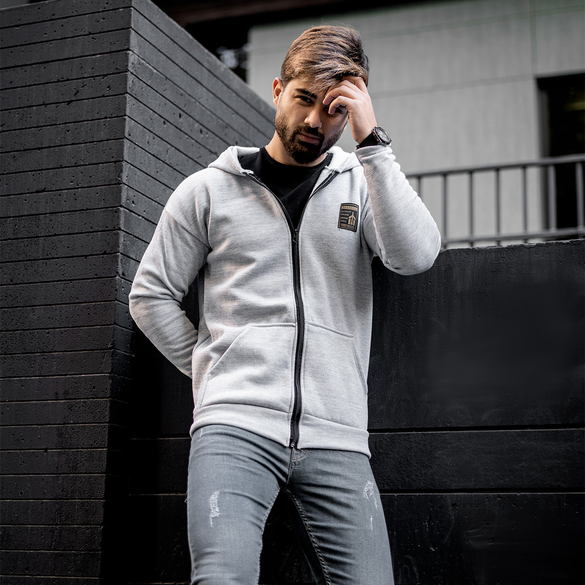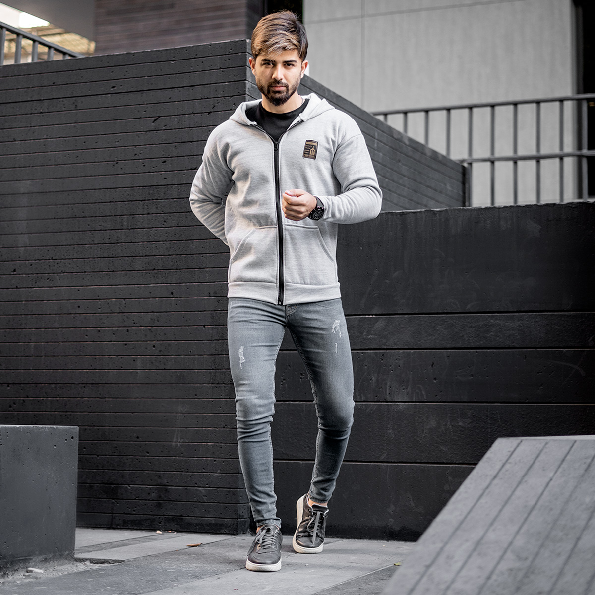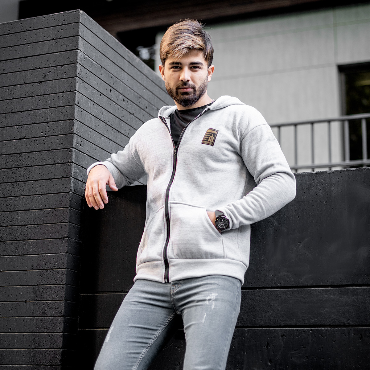 سوییشرت طوسی روشن زیپ دار مردانه مدلA2021