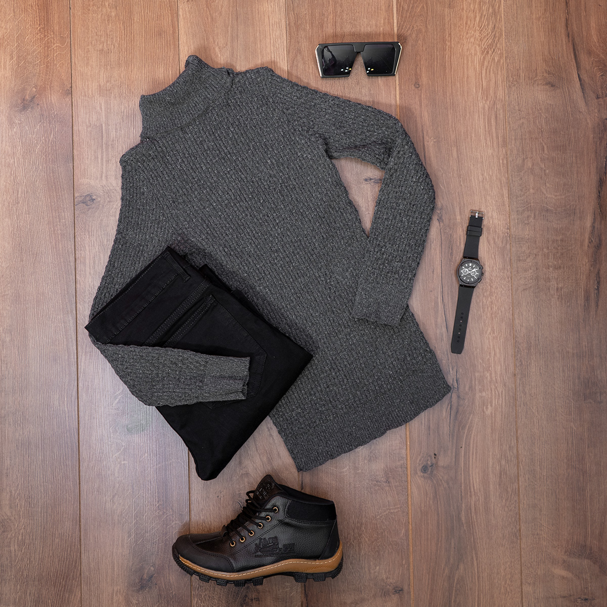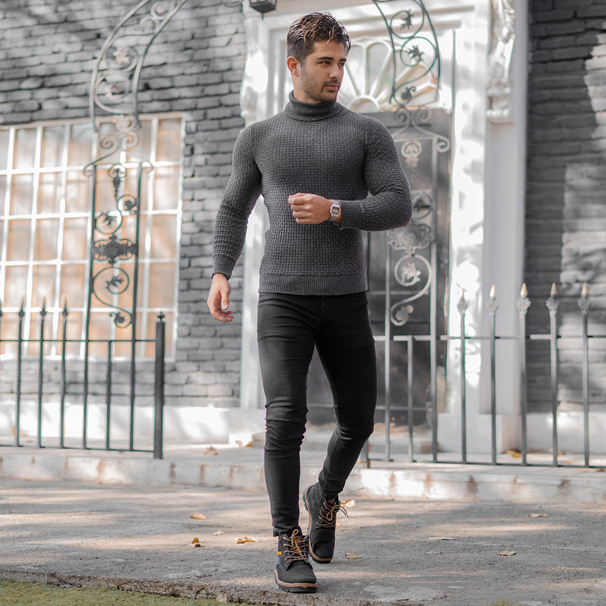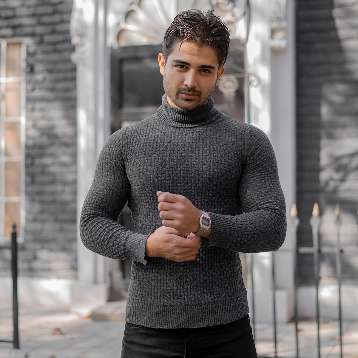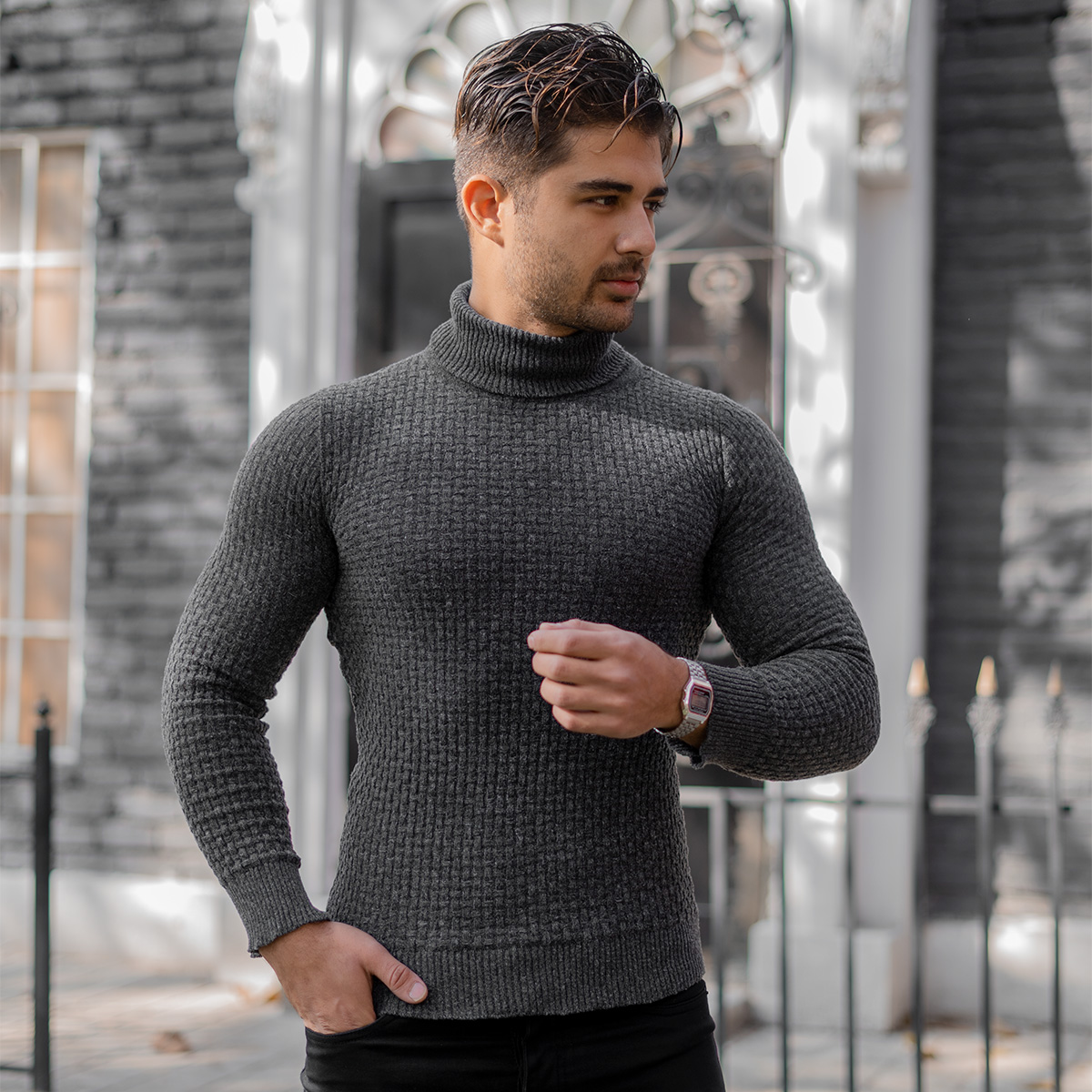 پلیور یقه اسکی مردانه طوسی تیره مدل Oktav