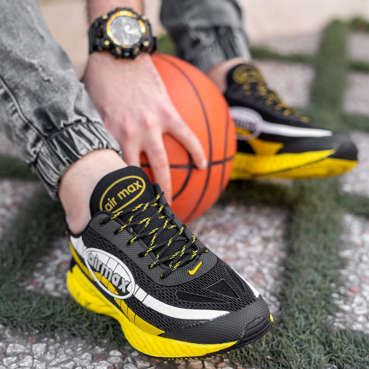 کفش ورزشی مشکی زرد مردانه مدل Airmax