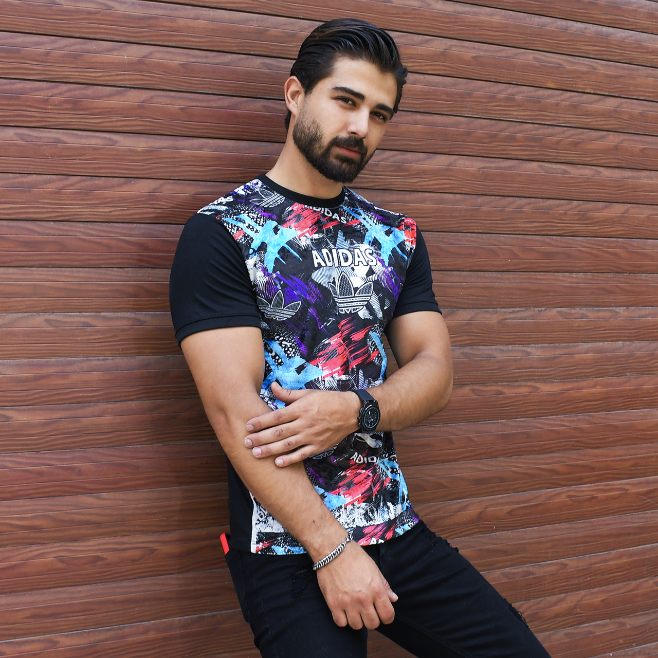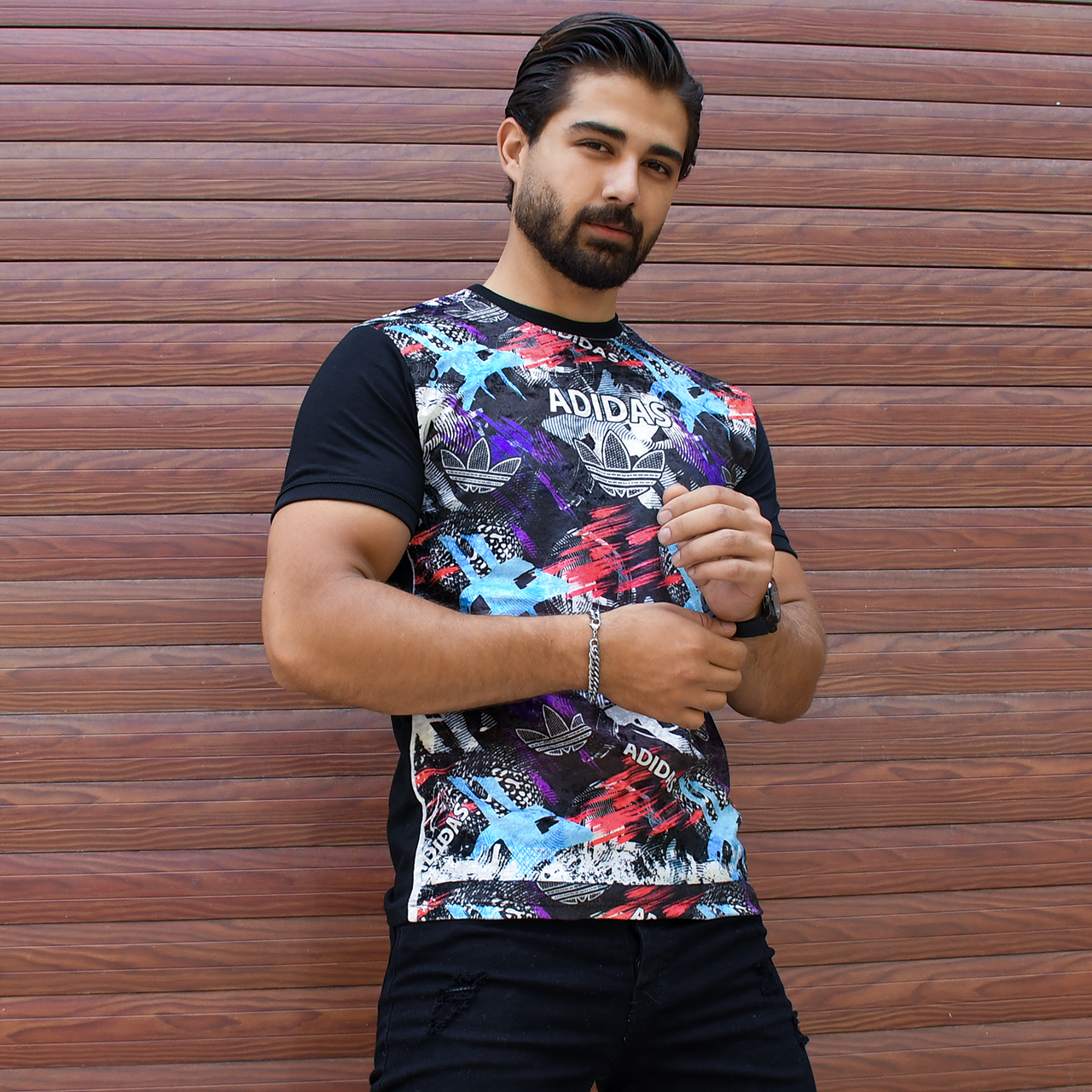 تیشرت مخمل مردانه آدیداس مشکی مدلL104