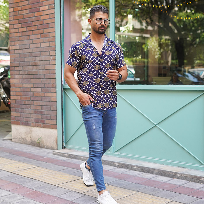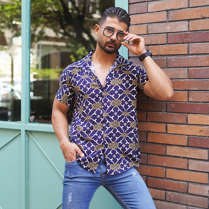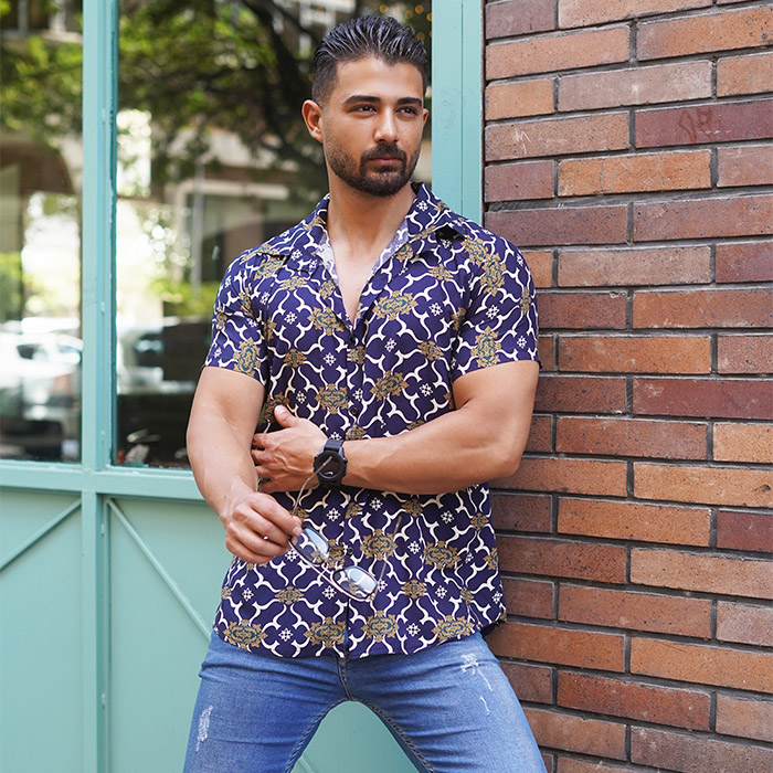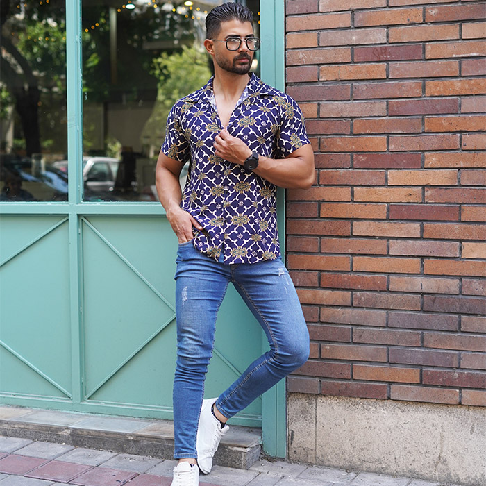 پیراهن هاوایی مردانه طرح پرانتز سرمه ای مدلE92