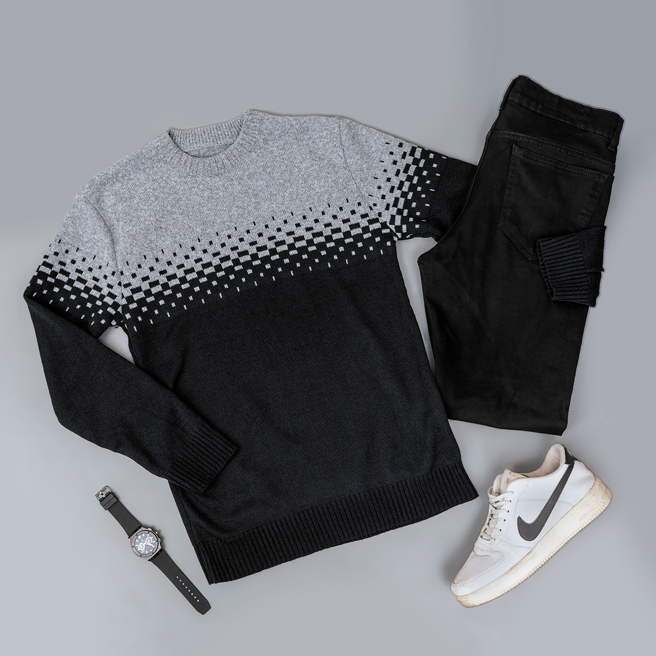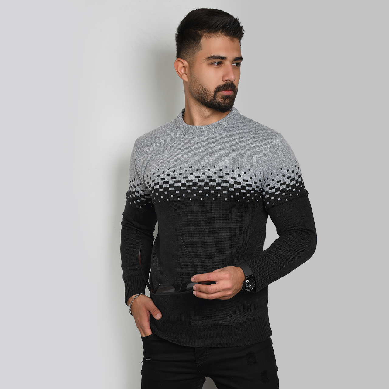 پلیور مردانه دو رنگ مشکی طوسی مدلShatel