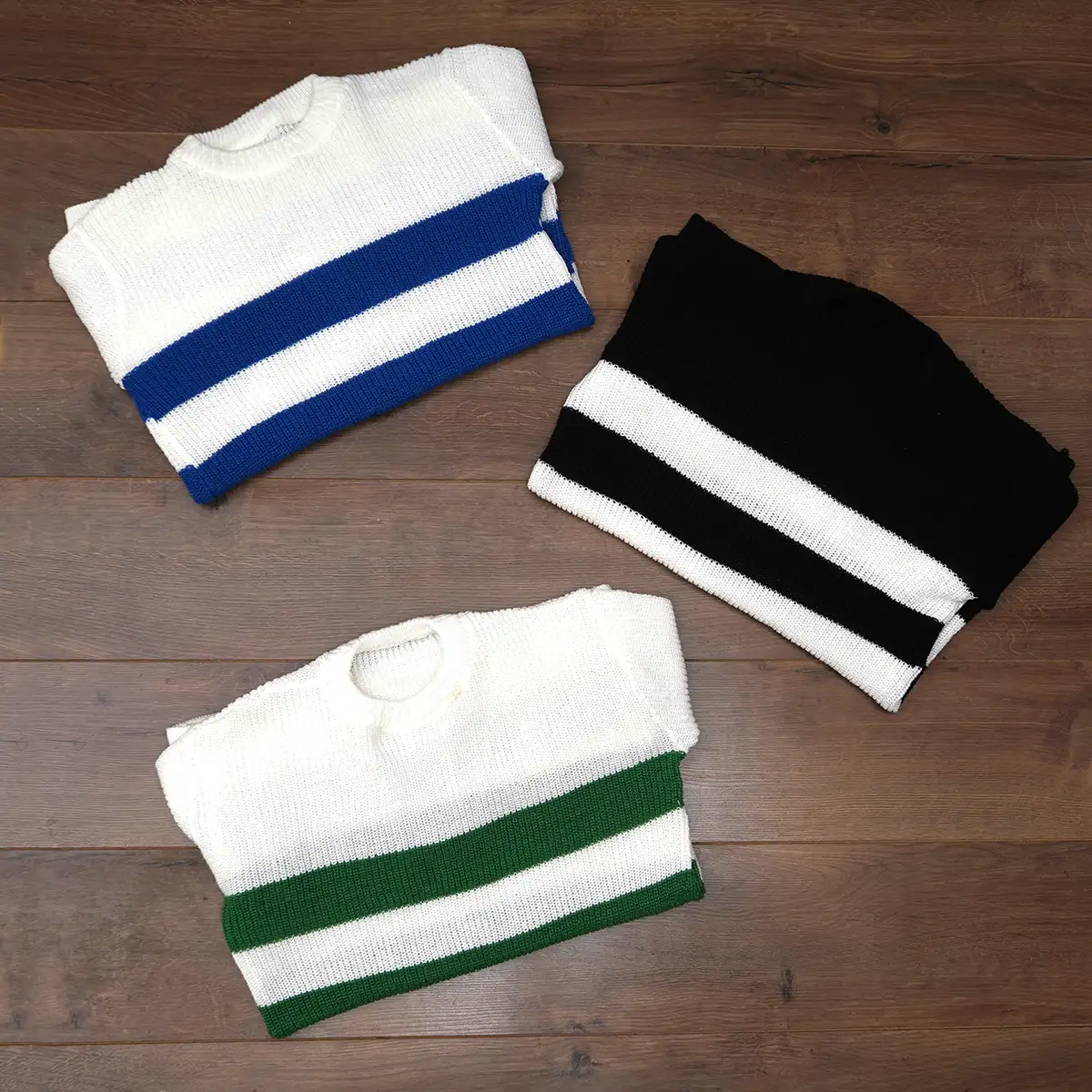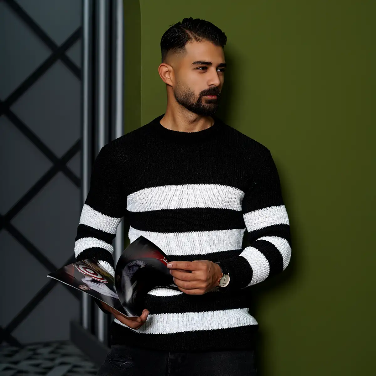 پلیور مردانه راه راه سفید مشکی مدل Mahyad