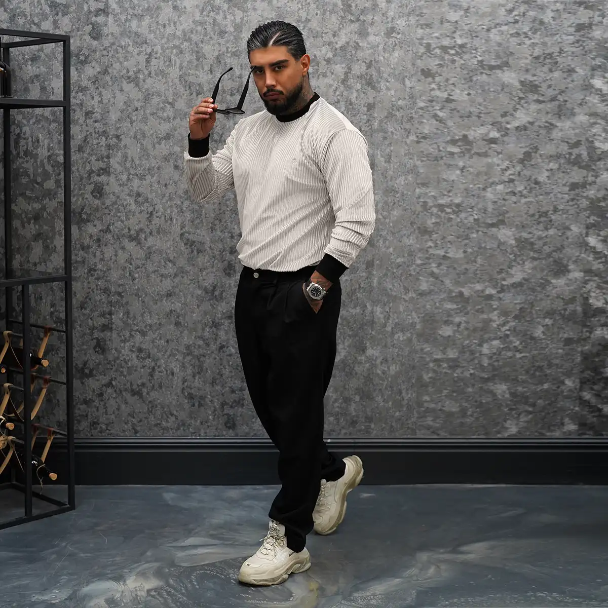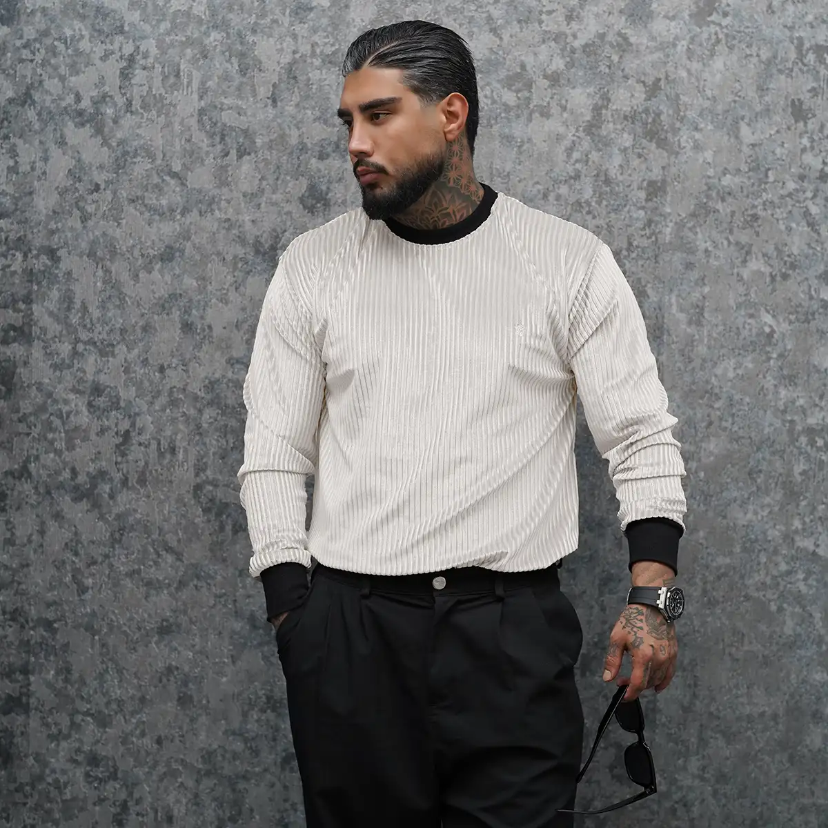 تیشرت آستین بلند سفید مردانه مدل Behrouz