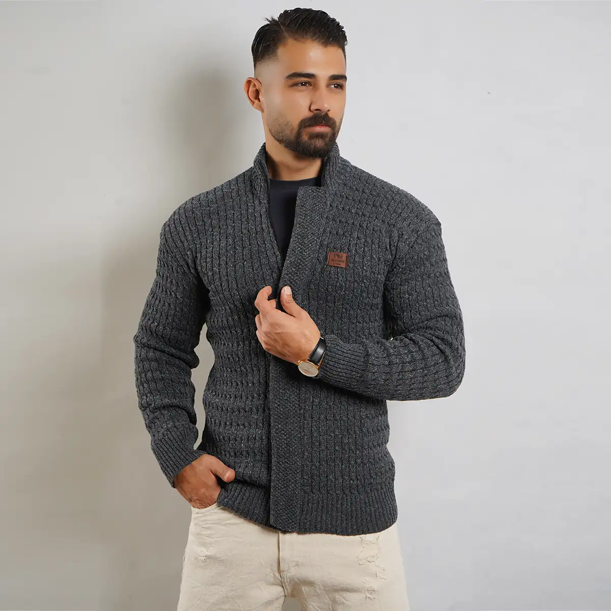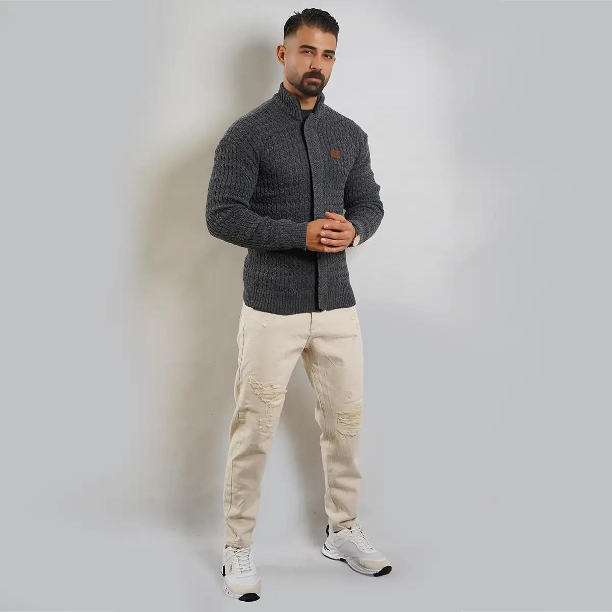سوئیشرت بافت ذغالی مردانه مدل OKSEN