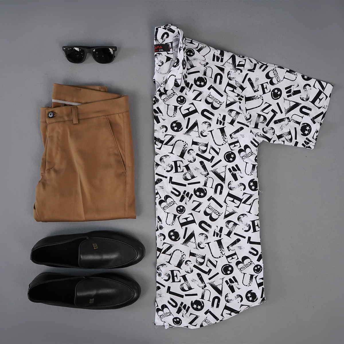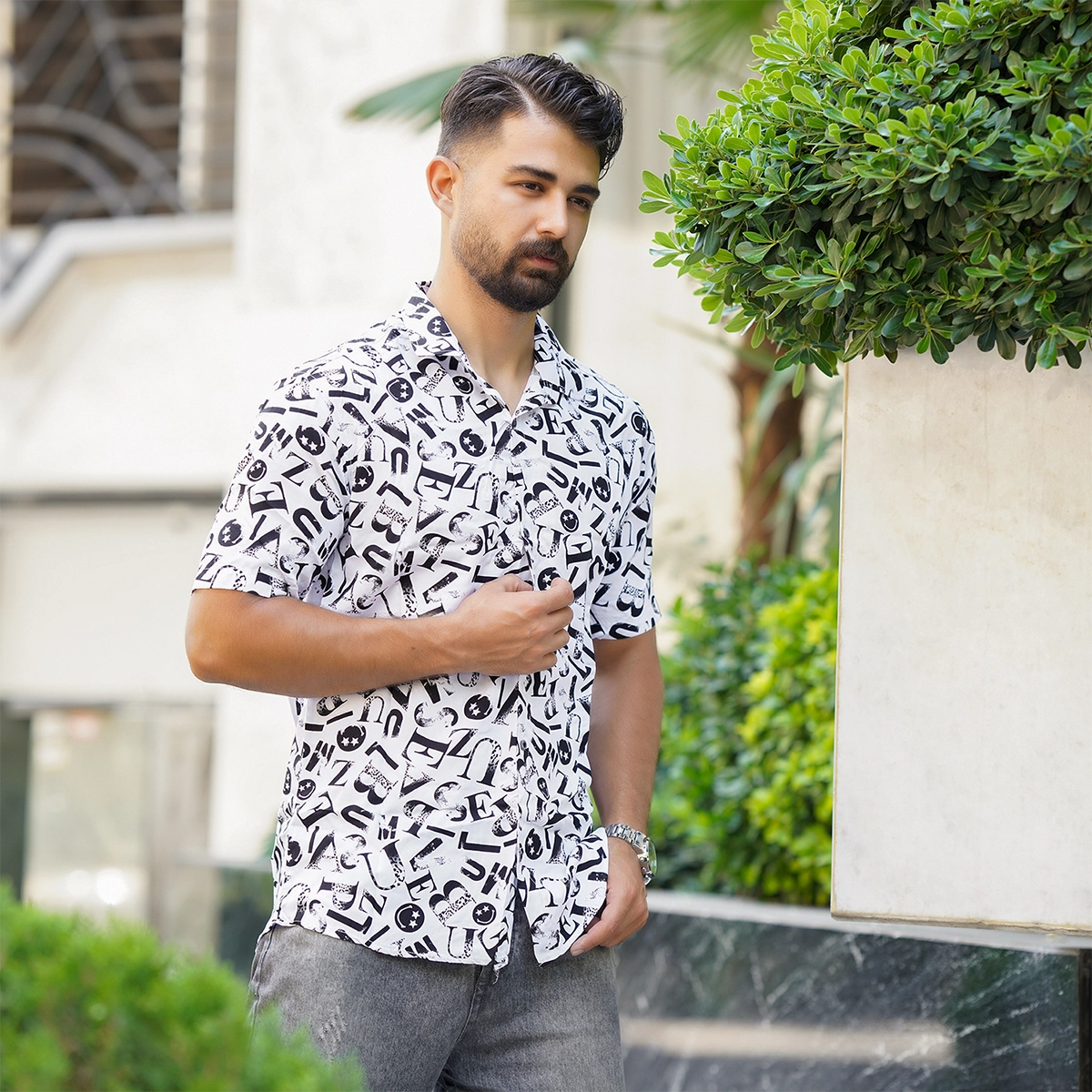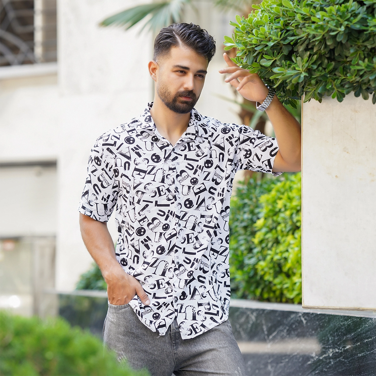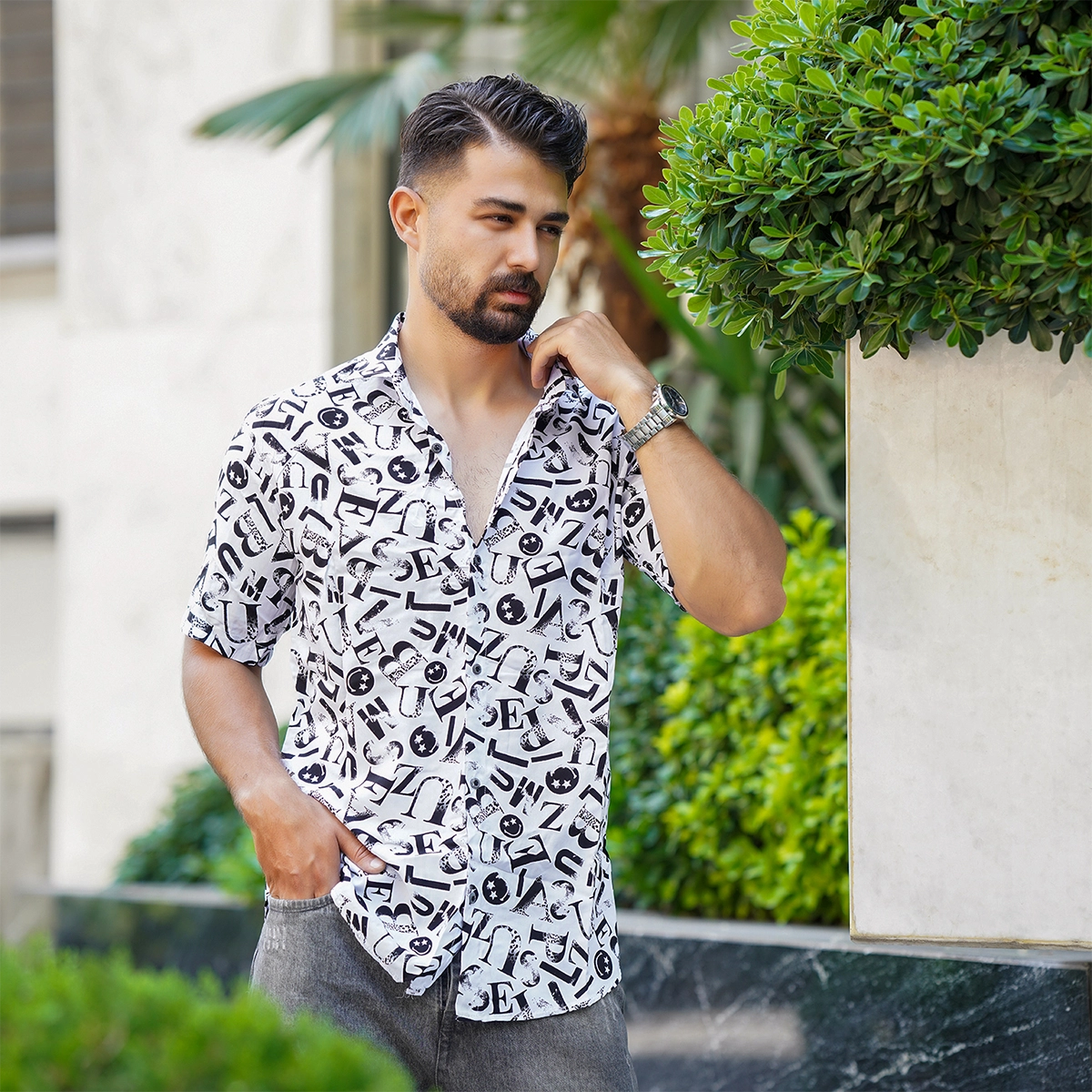 پیراهن هاوایی طرح حروف مردانه مدل W20