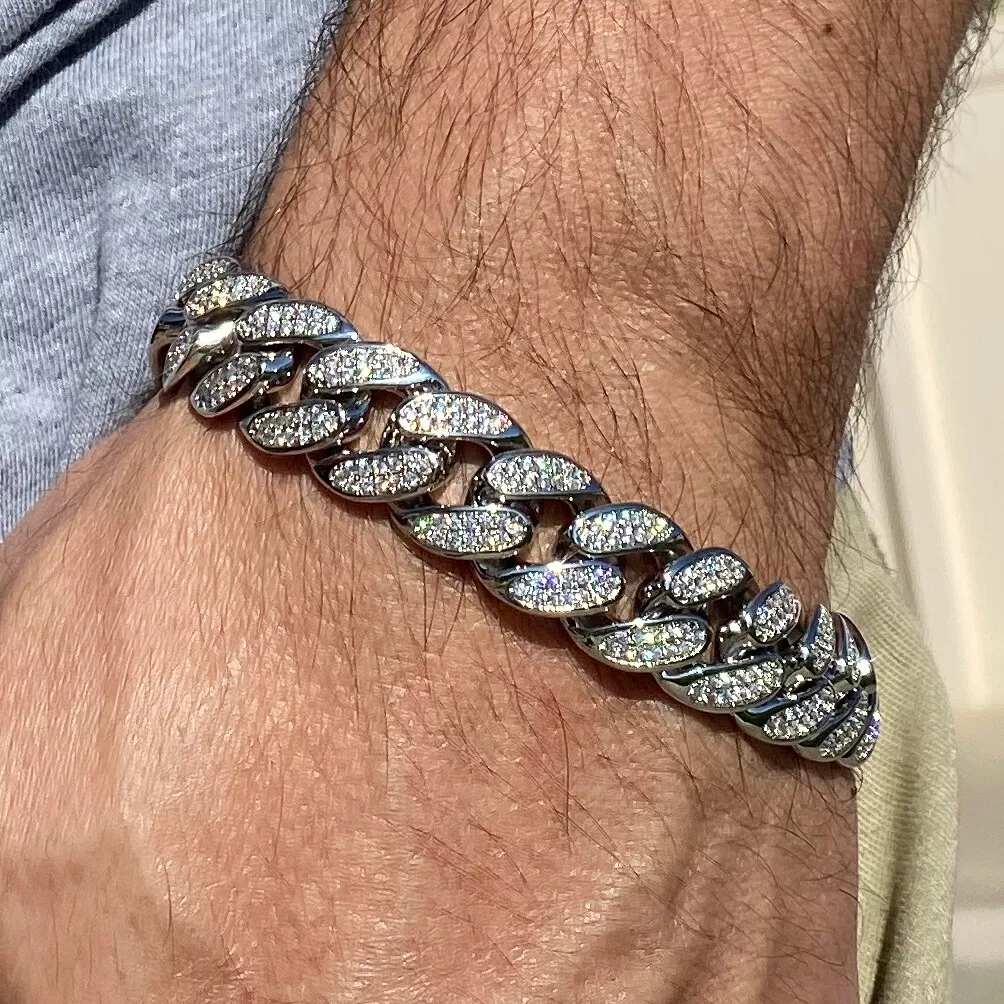 دستبند نقره ای کارتیر مردانه مدل فول نگین