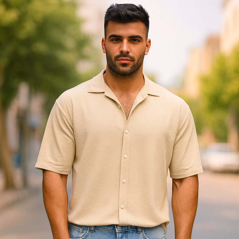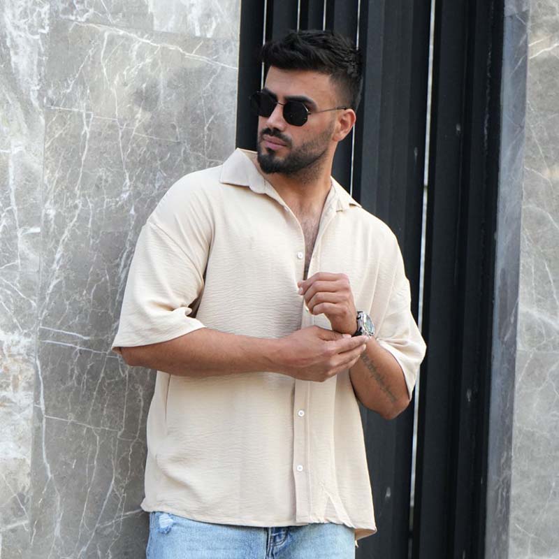 پیراهن آستین کوتاه کرم مردانه مدل باکسی