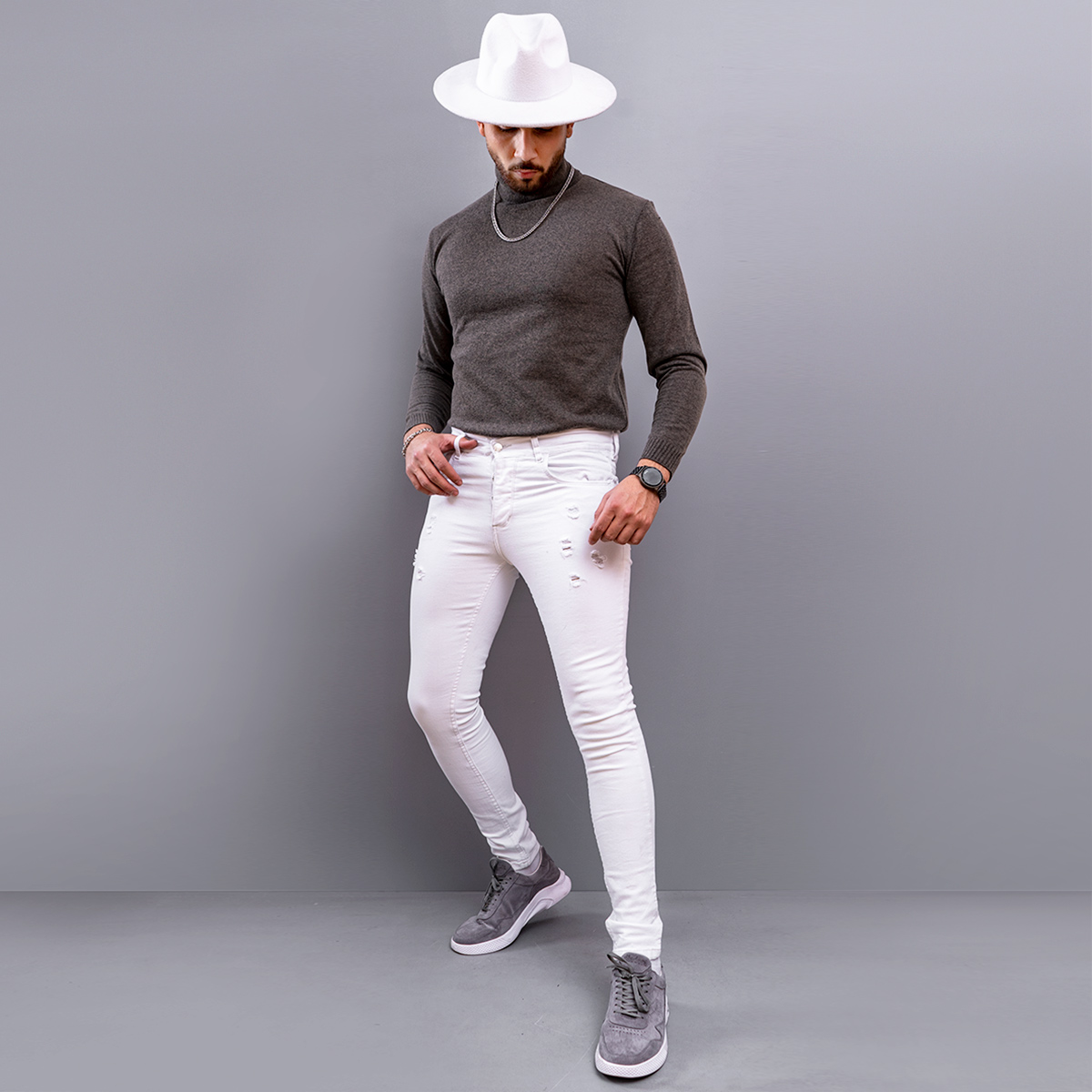 پليور بافت يقه اسكي مردانه مدل Ersan رنگ طوسي