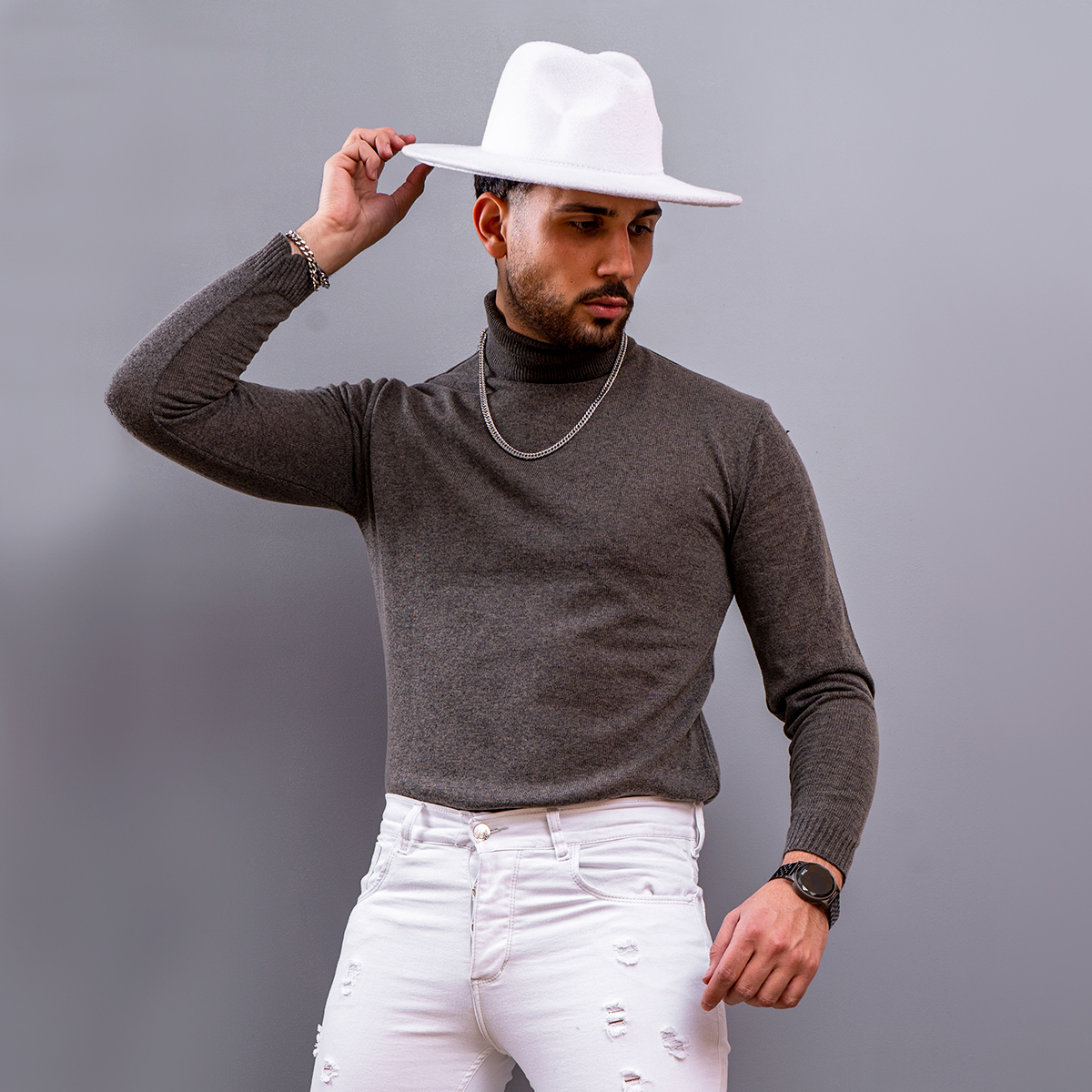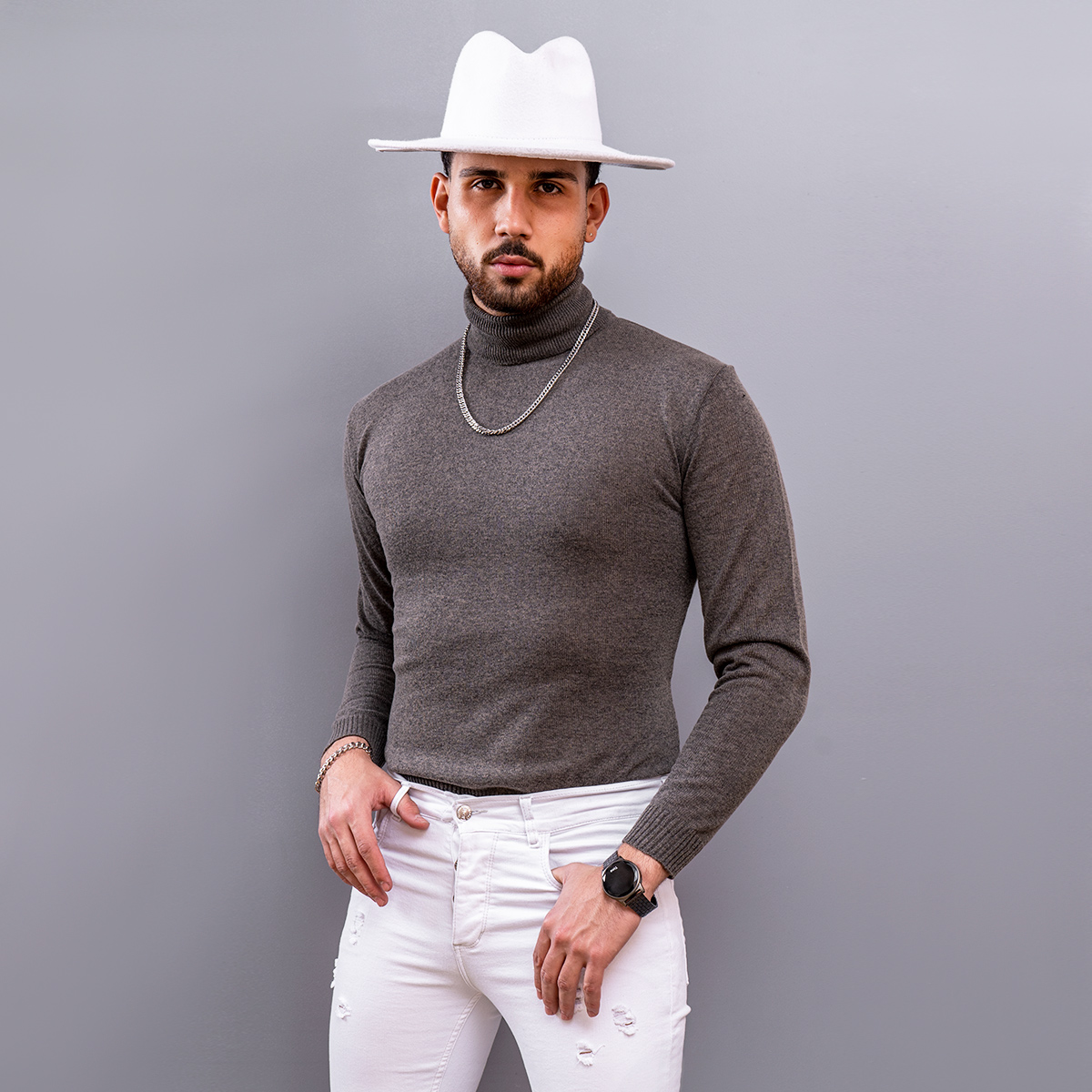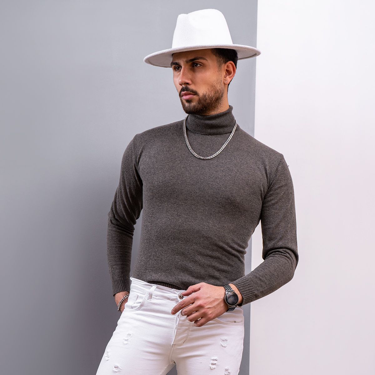 پلیور بافت یقه اسکی مردانه مدل Ersan رنگ خاکی