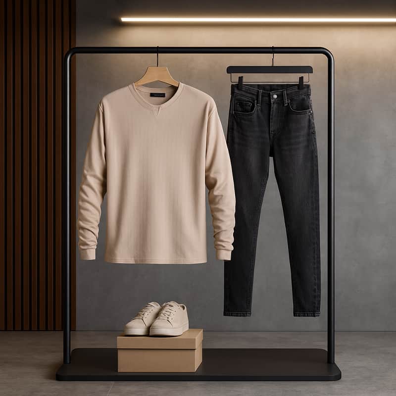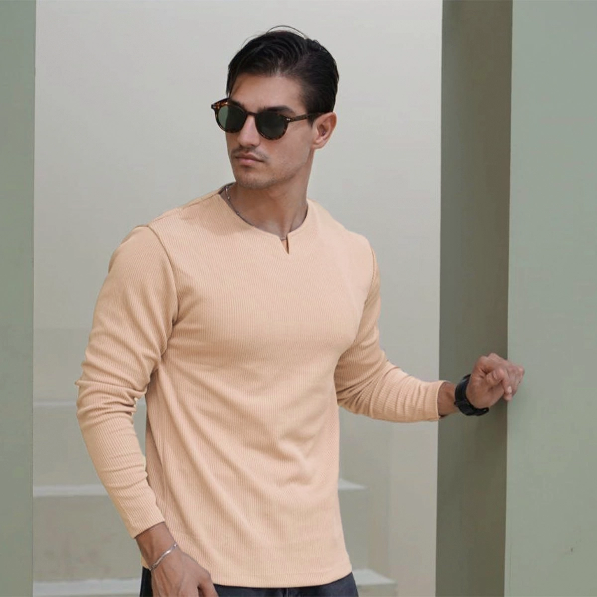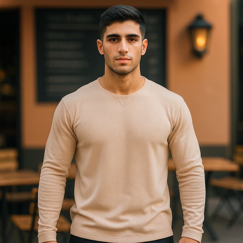 بلوز مردانه کرم یقه کوبایی مدل Etron